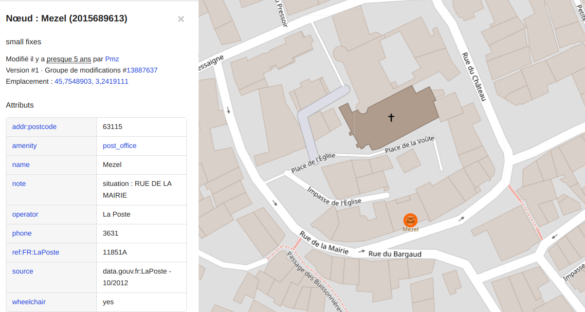 - Attributs libres, basés sur le consensus et la popularité, documentés (wiki) ou interrogeables (taginfo)